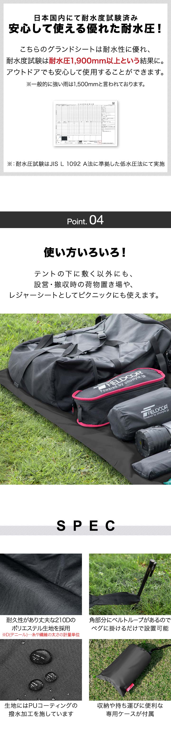 FIELDOOR グランドシート テントシート 230cm × 220cm 撥水加工 湿気防止 汚れ防止 キズ防止 テント用 レジャーシート テントマット おすすめ 軽量 コンパクト サイズ 230 台形 必要 テントアクセサリー GROUND SHEET 送料無料