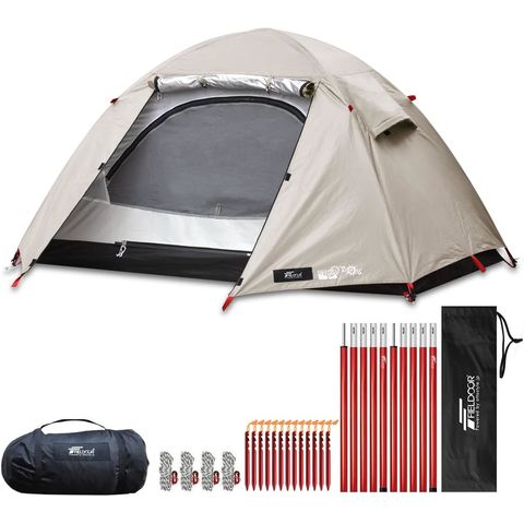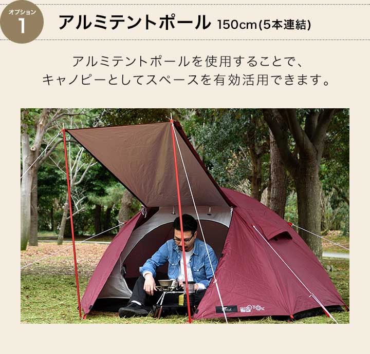 FIELDOOR テント ソロテント (ライトベージュ/本体&追加ポール2本) フィールドキャンプドーム 100 1人用 210x105cm ドームテント UVカット ドーム型 耐水圧 1,500mm以上 メッシュ フルクローズテント キャノピー インナーテント テントポール 簡易テント 送料無料