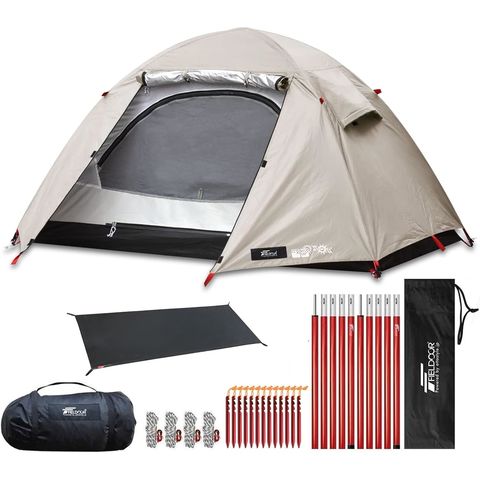 FIELDOOR テント ソロテント (ライトベージュ/本体&追加ポール&グランドシート) フィールドキャンプドーム 100 1人用 210x105cm ドームテント UVカット ドーム型 耐水圧 1,500mm以上 メッシュ フルクローズテント キャノピー インナーテント テントポール 送料無料