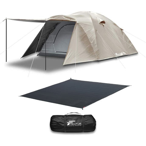 FIELDOOR テント 4人用 (ライトベージュ/本体&専用グランドシートセット) ドームテント 大型 5人用 6人用 キャンプテント UVカット キャノピー ポール 付 耐水圧 1,500mm以上 フィールドキャンプドーム300 キャノピーテント フルクローズテント 組み立て式 送料無料