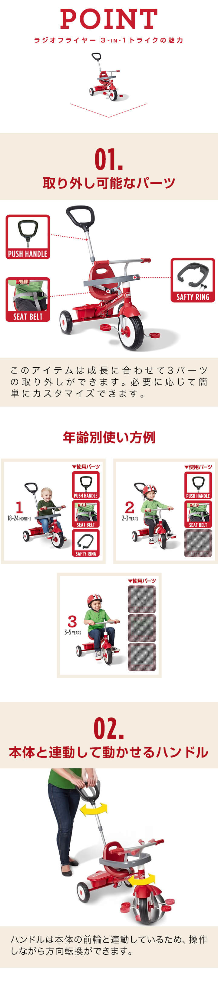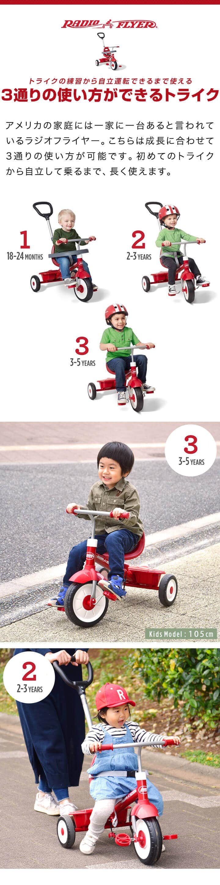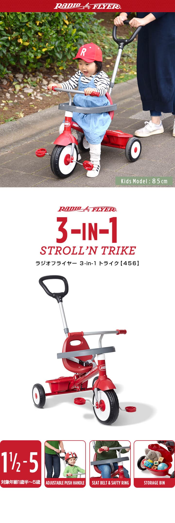 Radio Flyer ラジオフライヤー 3-in-1 トライク 456 三輪車 1歳半~ かじとり 折りたたみ 乗用玩具 自転車 足けり プッシュハンドル 手押し棒 クリスマス 送料無料