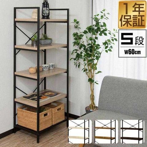 収納棚 オープンラック 5段 (ダークブラウン)幅60cm 奥行43cm シェルフ おしゃれ ディスプレイラック アイアンシェルフ 五段 フリーラック 多目的ラック 本棚 収納 ラック 棚 スチールフレーム 木目調天板 飾り棚 シェルフ オープンシェルフ 送料無料