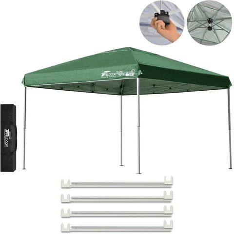 FIELDOOR ワンタッチタープテント 3m (標準:グリーン/スチール/強化版サイドフレーム/センターロック/強化サポート) テント タープ ワンタッチ ワンタッチテント ワンタッチタープ UV加工 撥水 ベンチレーション 収納バッグ付 日よけ キャンプ 送料無料