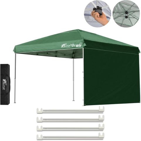 FIELDOOR ワンタッチタープテント 3m (標準:グリーン/スチール/強化版サイドフレーム/センターロック/強化サポート/サイドシート1枚付) テント タープ ワンタッチテント ワンタッチタープ UV加工 撥水 ベンチレーション 日よけ キャンプ 送料無料