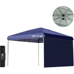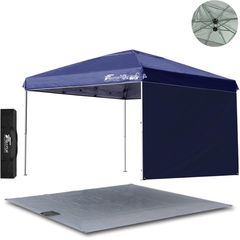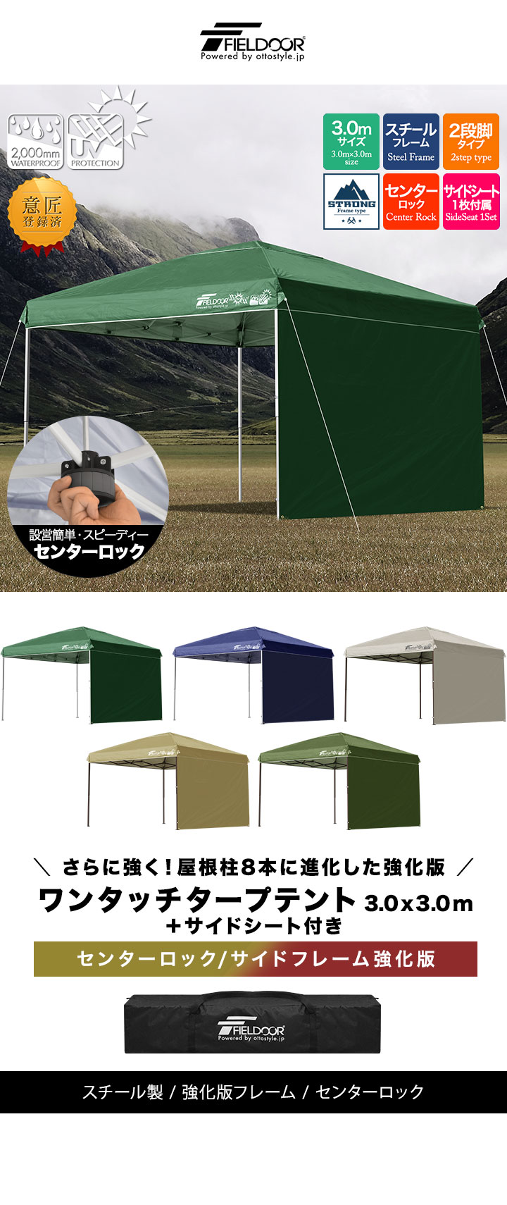 FIELDOOR ワンタッチタープテント 3m (標準:ブルー/スチール/強化版サイドフレーム/センターロック/グランドシート/サイドシート1枚付) テント タープ ワンタッチテント ワンタッチタープ UV加工 撥水 ベンチレーション 日よけ キャンプ 送料無料