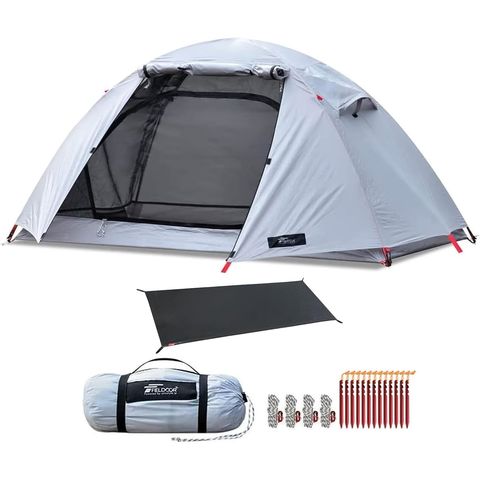 FIELDOOR テント ソロテント (本体&専用グランドシート) フィールドキャンプドーム 100 ライト 1人用 210x105cm 軽量 コンパクト収納 36x16cm 前室 メッシュ フライシート インナーテント ダブルウォール キャノピー ツーリングテント アウトドア 送料無料