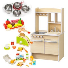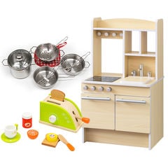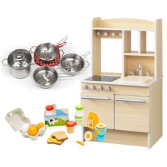 RiZKiZ ままごと キッチン (ホワイト/本体&お鍋&モーニングセット) お店ごっこ 両面 木製 子供 子ども 3歳~ ままごとセット ままごとキッチンセット ごっこ遊び ままごとキッチン お店屋さん 台所 おもちゃ お料理 食材 知育玩具 プレゼント 送料無料