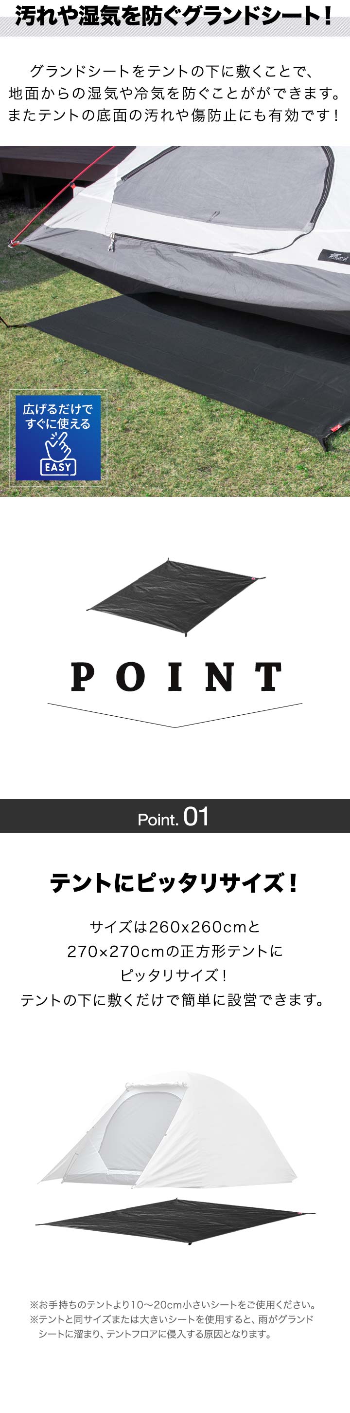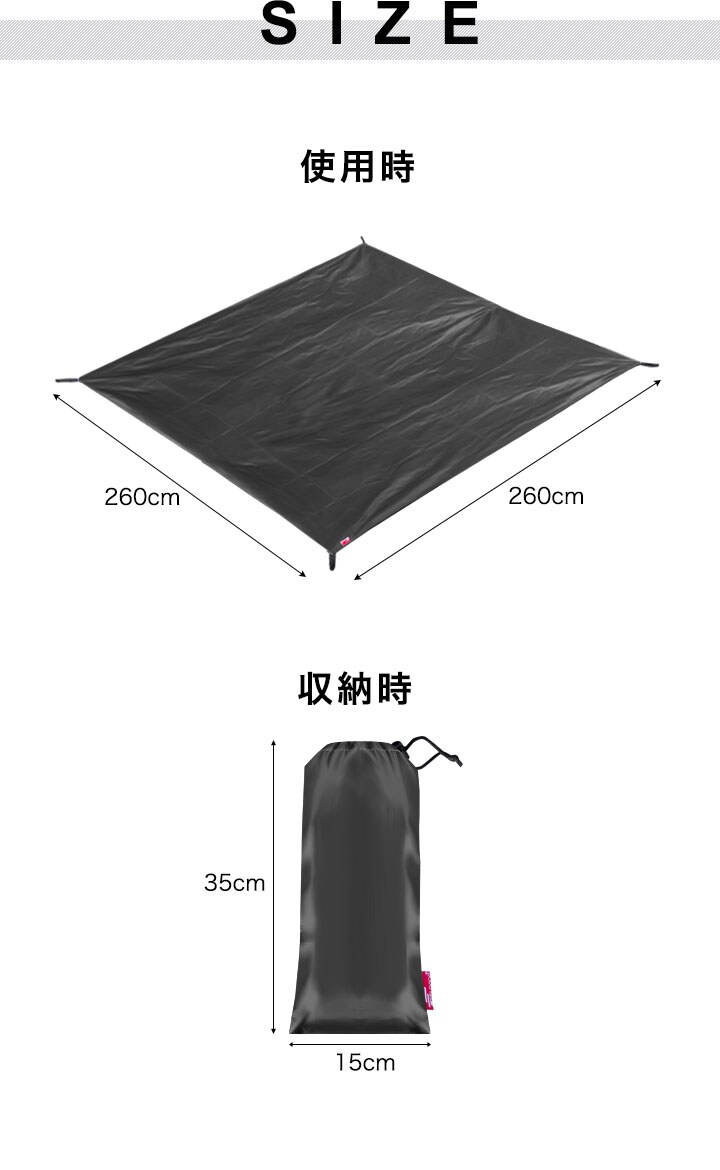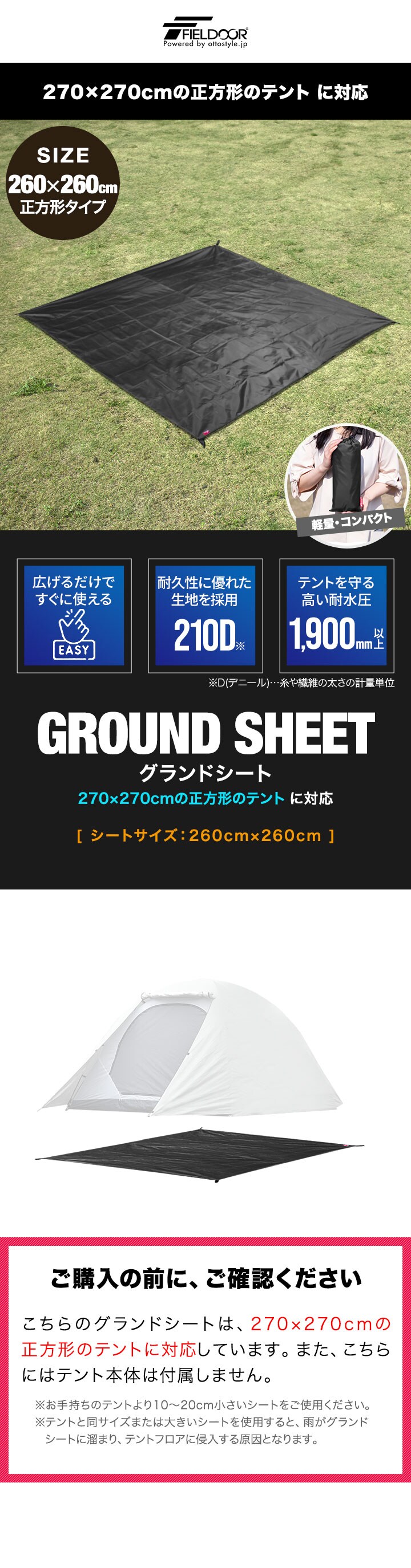 FIELDOOR グランドシート テントシート 2.6m 正方形 260×260cm 2.7mテント対応 撥水加工 湿気防止 汚れ防止 キズ防止 互換 汎用 レジャーシート テントマット おすすめ 軽量 コンパクト アウトドアギア テント用 アクセサリー 送料無料
