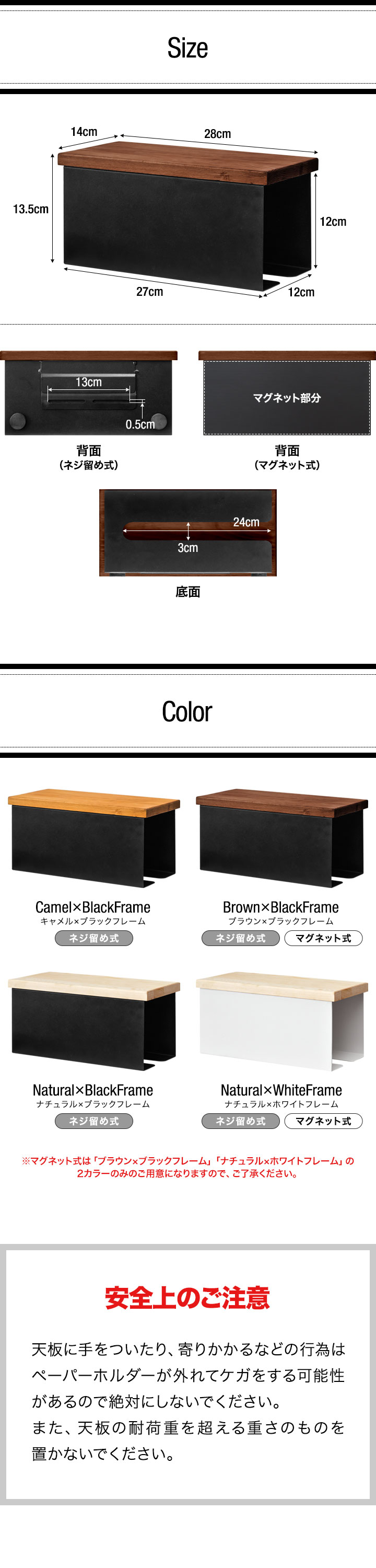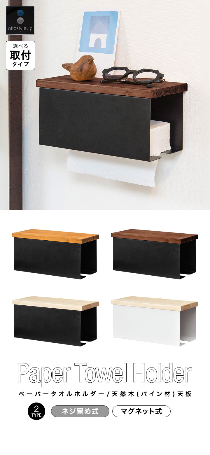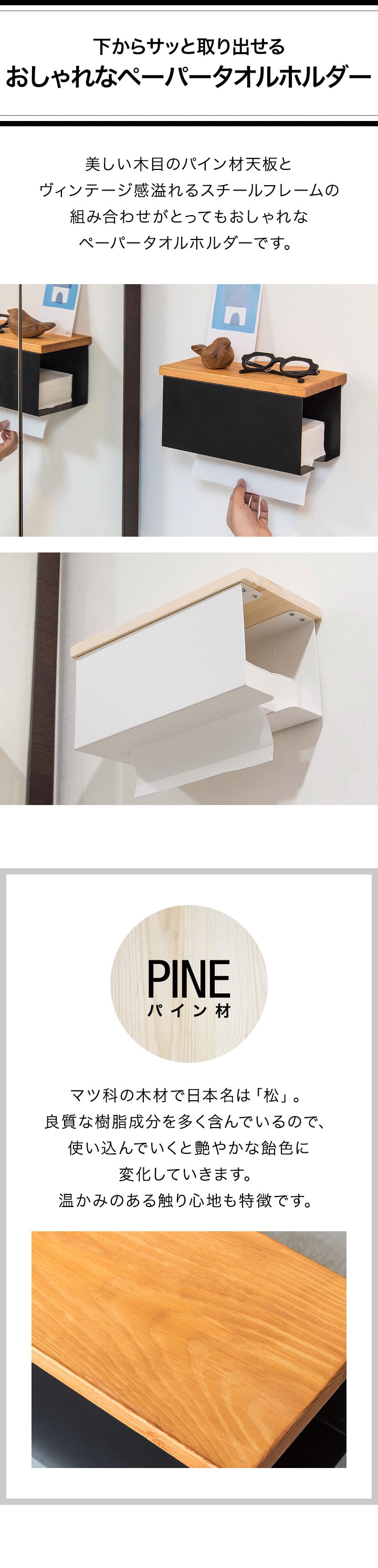 ペーパータオルホルダー 壁掛け 幅24cm (キャメル天板×ブラックフレーム/ねじ留め式) 棚付き 木製 ティッシュペーパー 耐荷重 3kg~5kg 天然木 天板 アイアン ペーパーホルダー キッチンペーパー 箱ティッシュ トイレ 洗面所 台所 キッチン 飾り棚 壁付け 送料無料