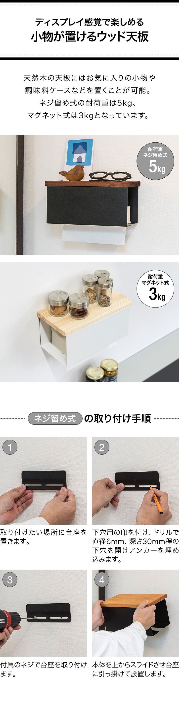 ペーパータオルホルダー 壁掛け 幅24cm (キャメル天板×ブラックフレーム/ねじ留め式) 棚付き 木製 ティッシュペーパー 耐荷重 3kg~5kg 天然木 天板 アイアン ペーパーホルダー キッチンペーパー 箱ティッシュ トイレ 洗面所 台所 キッチン 飾り棚 壁付け 送料無料のレビュー