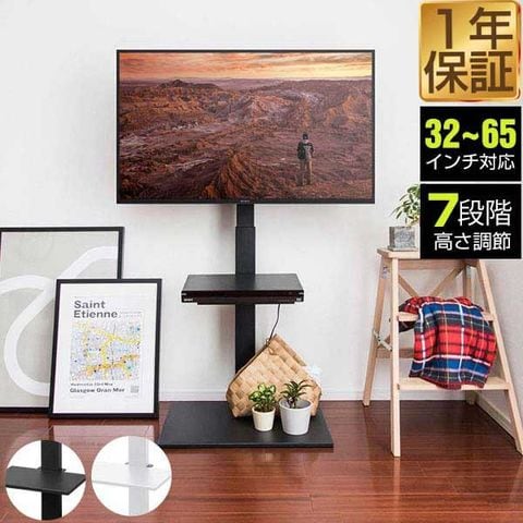 テレビ台 壁寄せ 棚付き (ホワイト) テレビスタンド 32型~65型対応 ハイタイプ 高さ調整 7段階 自立式 省スペース スリム 配線収納 テレビラック 棚付き TVスタンド TVラック TV台 ブラック/ホワイト ホームシアター レコーダー 送料無料