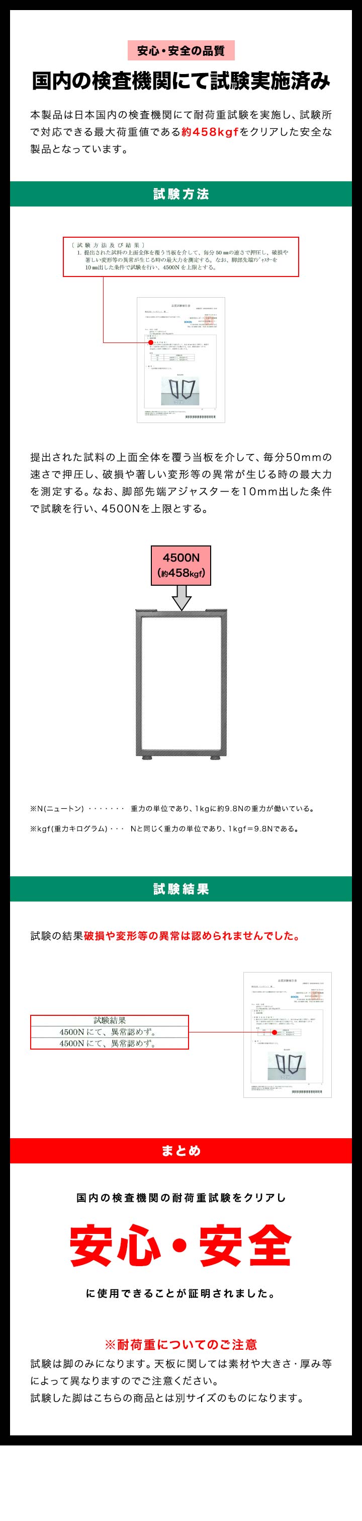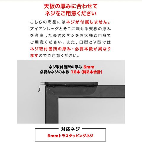 | 特記事項: ※天板・ネジは付属しません。 ※本製品とそこに載せる天板の厚みを考慮した長さのネジをご用意ください。 ※天板に下穴を開けてからネジを取り付けてください。 ※天板の素材や大きさ・厚み等によって耐荷重は異なります。 |