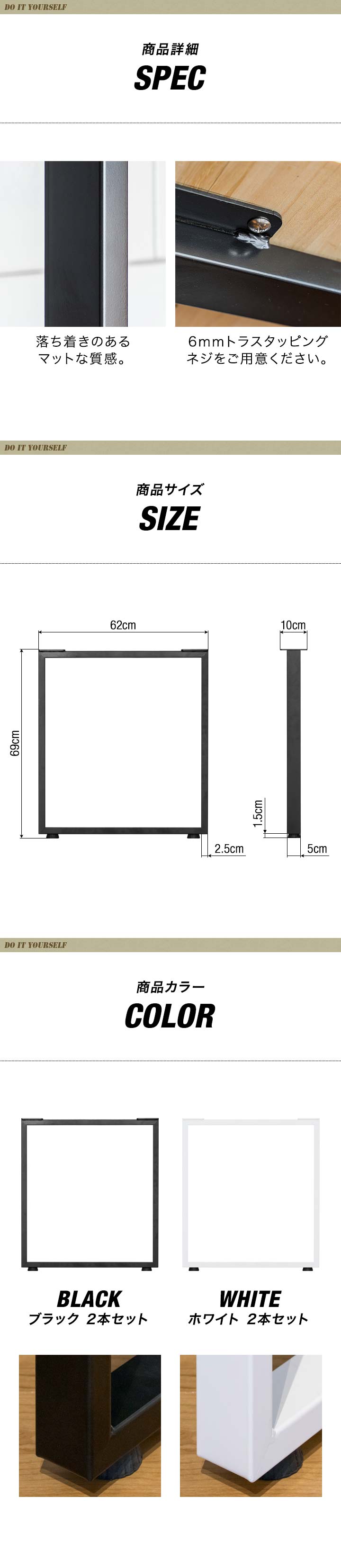 テーブル 脚 パーツ 2本セット 目安 高さ69cm~70cm 口型 (ブラック2本セット) アイアンレッグ 鉄 スチール 自作 DIY リメイク ダイニングテーブル デスク テーブル脚 2本組 ※テーブル脚のみ 送料無料
