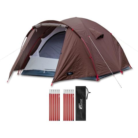 FIELDOOR フォークテント280プラス (ダークブラウン/本体&150cm追加ポール2本) 280cm 二又ポール 広々前室 UVカット 耐水圧 1,500mm以上 ドームテント フルクローズテント ティピー ソロキャンプ ツーリング シェルター インナーテント付き アウトドア 送料無料