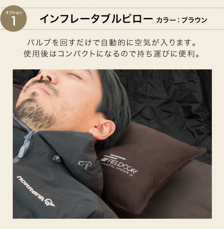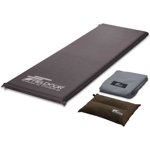 FIELDOOR 車中泊マット 5cm厚 (Sサイズ:幅65×長さ190cm/ブラウン/マット1枚、枕&シーツ×各1点つき) 段差解消 連結 自動膨張 ウレタン インフレータブルマット キャンピングマット インフレーター キャンプ 車中泊 マット 簡単 アウトドア 寝具 防災 送料無料