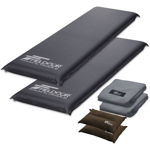 FIELDOOR 車中泊マット 10cm厚 (Sサイズ:幅60×長さ188cm/ブラック/マット2枚、枕&シーツ×各2点つき) 段差解消 連結 自動膨張 高密度ウレタン インフレータブル キャンプマット エアーマット エアマット エアーベッド エアベッド おすすめ アウトドア 寝具 防災 送料無料