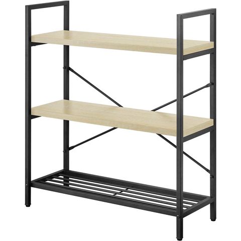 ラック 棚 木製 3段 スリム (オーク) 薄型 幅80cm 奥行30cm シェルフ オープンラック 収納棚 アイアンシェルフ 三段 フリーラック ディスプレイラック 収納 木目 間仕切り キッチン リビング収納 オープンシェルフ スチールラック 送料無料