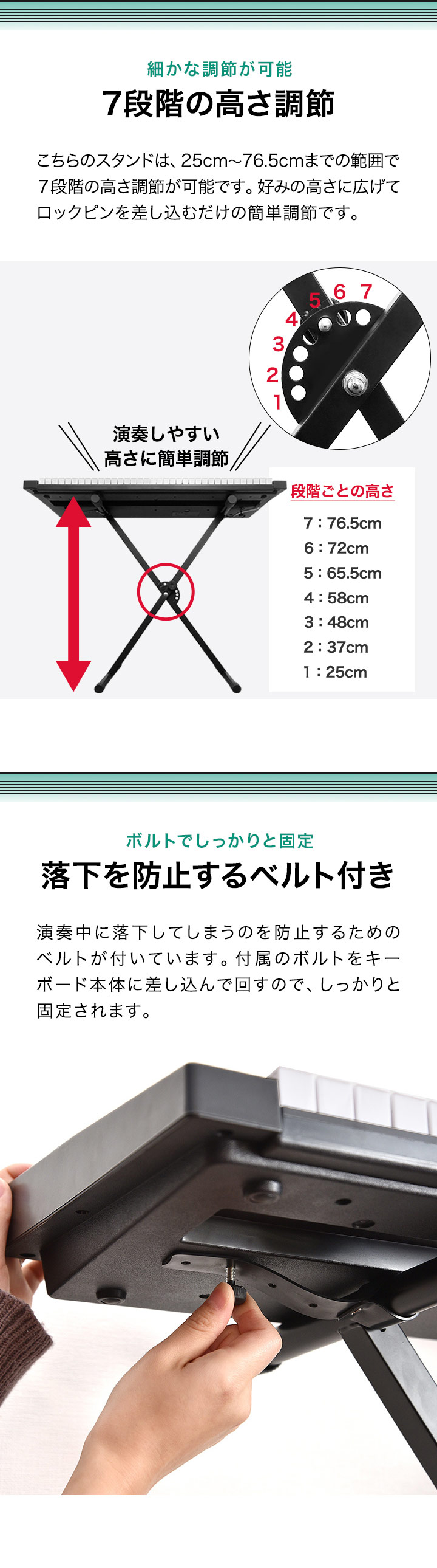 RiZKiZ 電子キーボード 61鍵盤用 キーボードスタンド 折りたたみ式 高さ調整7段階 キーボード用オプション リズキズ ※キーボード本体・チェア等は別売です。 送料無料