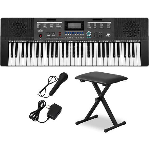 RiZKiZ 電子キーボード 61鍵盤 (C/チェア付きセット) 電子ピアノ シンセサイザー AC/乾電池駆動 持ち運び 楽器 練習 初心者 入門用 練習モード レッスン 音楽 演奏 子供 61鍵盤電子キーボード マイク付き 送料無料