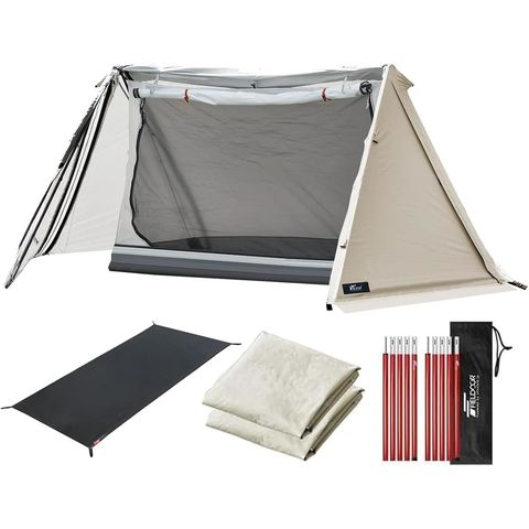 FIELDOOR パップテント 320 (ライトベージュ/B4:Bセット&ポール&グランドシート) 軽量 一人用 ソロテント 三角テント 軍幕 テント A型テント 二又ポール採用 ドームテント フルクローズテント ソロキャンプ アウトドア UVカット フライシート メッシュ インナーテント 送料無料のレビュー