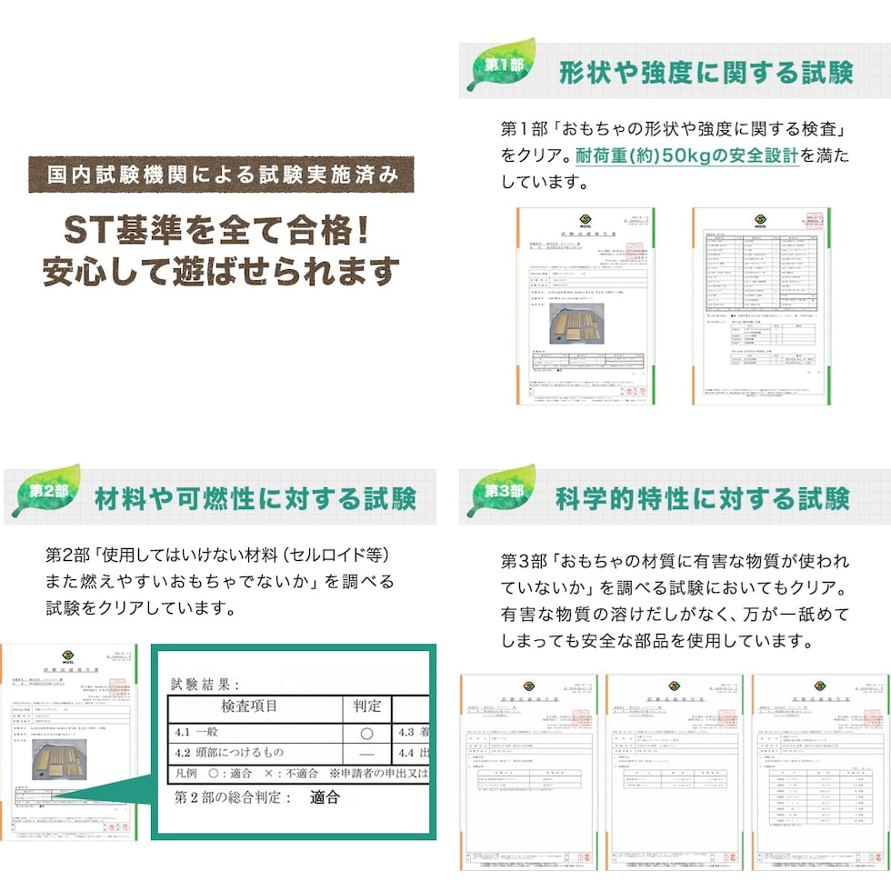 | 特記事項: ※絨毯の上など不安定な場所に置かないでください。転倒してケガや破損の原因になります。 ※本製品は室内専用です。屋外で使用しないでください。破損の原因になります。 ※火のそばに近づけて設置しないでください。火災の原因になります。 ※本体を水につけたり、水のかかる場所で使用しないでください。カビ・変色・変形の原因になります。 ※お手入れに塩素系・酸性タイプ等の洗剤は絶対に使用しないでください。カビ・変色したり、有毒ガスの発生により健康を害す事があります。 ※3人以上で同時に乗らないでください。 ※お子様がご使用の際は、けがをしたり、事故が起きないよう、必ず保護者の方が付き添い、目を離さないようご注意ください。 ※ご使用前、ご使用後は必ず点検を行ってください。万が一破損や異常があった場合は使用を控えてください。 ※荷重の負荷が大きい踊り場部分のみ、強度の有るプライウッドを使用しています。プライウッドは薄くスライスした木材を交互に貼り合わせているので、一枚板の無垢材よりも高い強度があります。 |