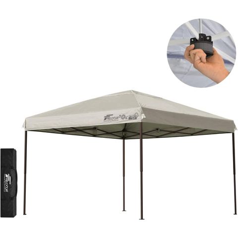 FIELDOOR ワンタッチタープテント 3m (標準:ライトベージュ/スチール/センターロック/タープ本体のみ) テント タープ ワンタッチ ワンタッチテント ワンタッチタープ UV加工 撥水 ベンチレーション 収納バッグ付 日よけ キャンプ バーベキュー 送料無料