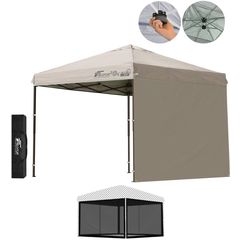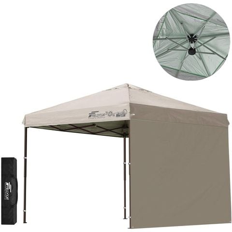 FIELDOOR ワンタッチタープテント 2.5m (標準:ライトベージュ/スチール/強化版サイドフレーム/4点脚ロック/タープ本体のみ/サイドシート1枚付) テント タープ ワンタッチテント ワンタッチタープ UV加工 撥水 ベンチレーション 日よけ キャンプ 送料無料