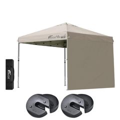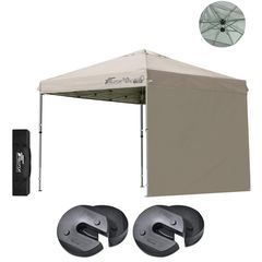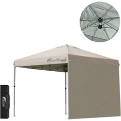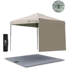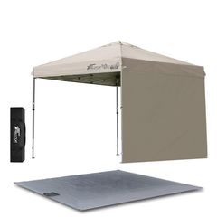 FIELDOOR ワンタッチタープテント 2.5m (標準:ライトベージュ/アルミ/4点脚ロック/タープ本体のみ/サイドシート1枚付) 軽量 テント タープ ワンタッチ ワンタッチテント ワンタッチタープ UV加工 撥水 ベンチレーション 収納バッグ付 日よけ キャンプ 送料無料