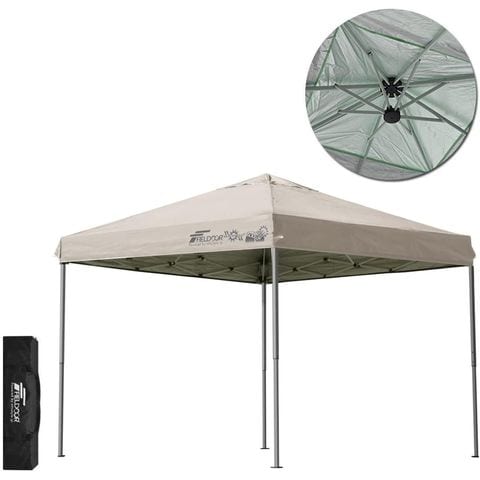 FIELDOOR ワンタッチタープテント 2.5m (標準:ライトベージュ/アルミ/強化版サイドフレーム/4点脚ロック/タープ本体のみ) 軽量 テント タープ ワンタッチ ワンタッチテント ワンタッチタープ UV加工 撥水 ベンチレーション 収納バッグ付 日よけ キャンプ 送料無料