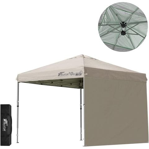 FIELDOOR ワンタッチタープテント 2.5m (標準:ライトベージュ/アルミ/強化版サイドフレーム/4点脚ロック/タープ本体のみ/サイドシート1枚付) 軽量 テント タープテントタープ UV加工 撥水 ベンチレーション 収納バッグ付 日よけ キャンプ 送料無料