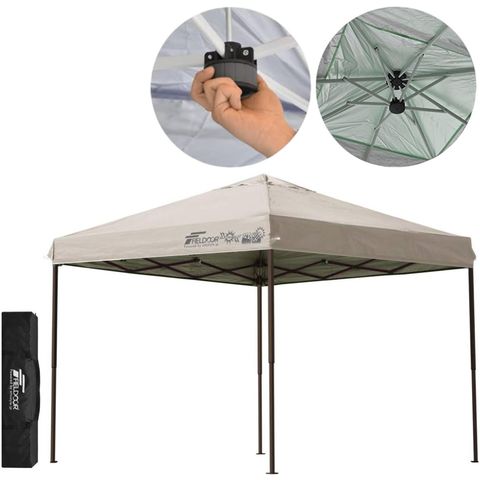 FIELDOOR ワンタッチタープテント 2.5m (標準:ライトベージュ/スチール/強化版サイドフレーム/センターロック/タープ本体のみ) テント タープ ワンタッチ ワンタッチテント ワンタッチタープ UV加工 撥水 ベンチレーション 収納バッグ付 日よけ キャンプ 送料無料