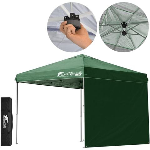 FIELDOOR ワンタッチタープテント 2.5m (標準:グリーン/スチール/強化版サイドフレーム/センターロック/タープ本体のみ/サイドシート1枚付) テント タープ ワンタッチテント ワンタッチタープ UV加工 撥水 ベンチレーション 日よけ キャンプ 送料無料