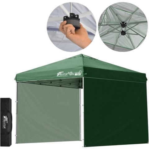 FIELDOOR ワンタッチタープテント 2.5m (標準:グリーン/スチール/強化版サイドフレーム/センターロック/タープ本体のみ/サイドシート2枚付) テント タープ ワンタッチテント ワンタッチタープ UV加工 撥水 ベンチレーション 日よけ キャンプ 送料無料