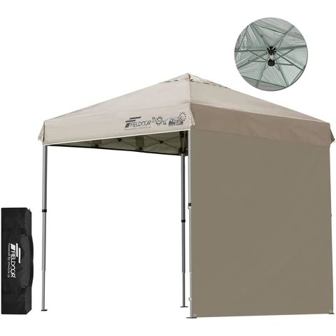 FIELDOOR ワンタッチタープテント 2m (標準:ライトベージュ/アルミ/強化版サイドフレーム/4点脚ロック/タープ本体のみ/サイドシート1枚付) 軽量 テント タープ ワンタッチテント ワンタッチタープ UV加工 撥水 ベンチレーション 収納バッグ付 日よけ キャンプ 送料無料