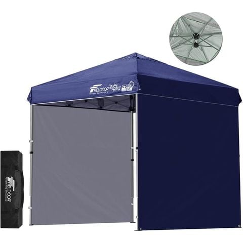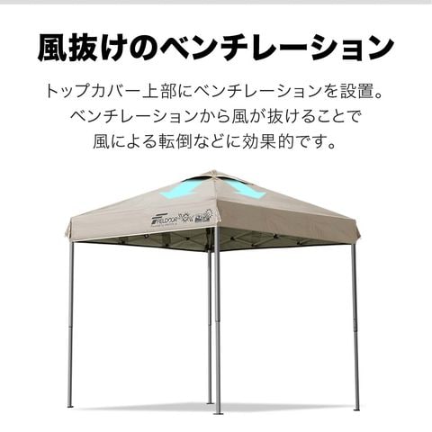 FIELDOOR ワンタッチタープテント 2m (標準:ブルー/アルミ/強化版サイドフレーム/4点脚ロック/タープ本体のみ/サイドシート2枚付) 軽量 テント タープ ワンタッチテント ワンタッチタープ UV加工 撥水 ベンチレーション 収納バッグ付 日よけ キャンプ 送料無料