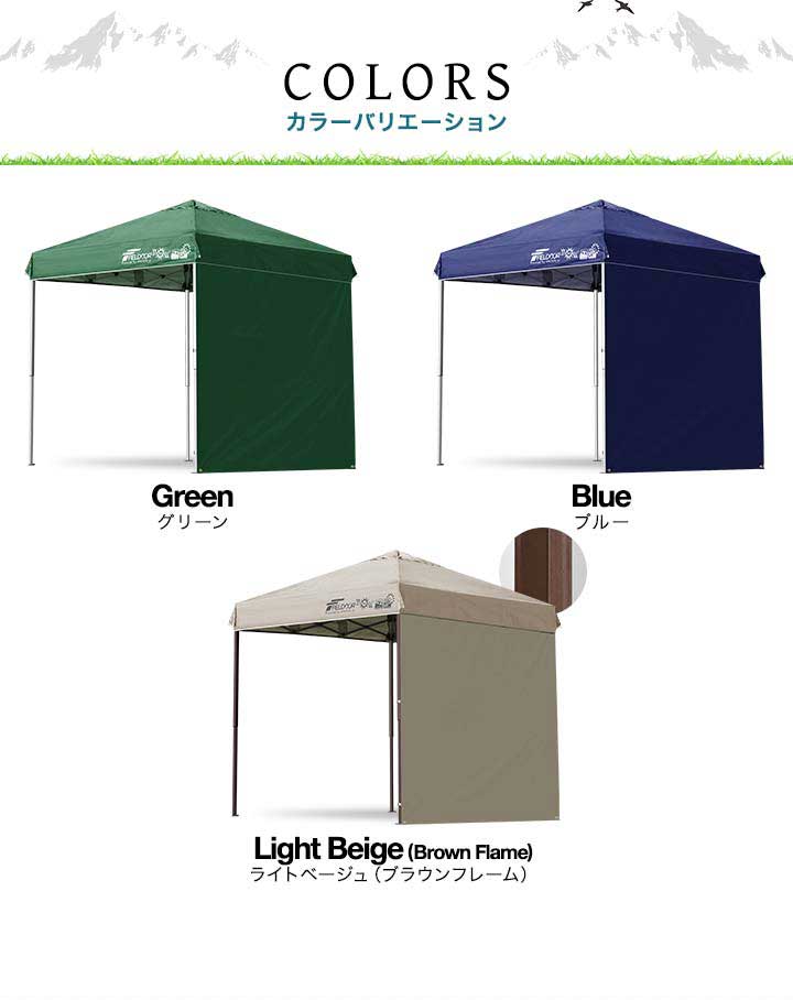 | 付属品: ・専用サイドシート(1枚) ・ロープ ・ペグ ・収納バッグ ・取扱説明書 |