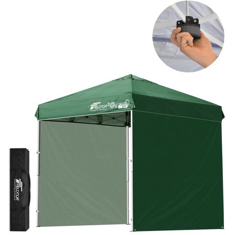 FIELDOOR ワンタッチタープテント 2m (標準:グリーン/スチール/センターロック/タープ本体のみ/サイドシート2枚付) テント タープ ワンタッチ ワンタッチテント ワンタッチタープ UV加工 撥水 ベンチレーション 収納バッグ付 日よけ キャンプ バーベキュー 送料無料