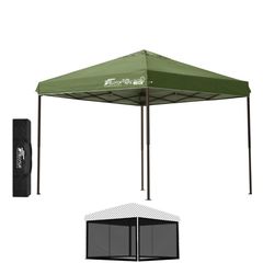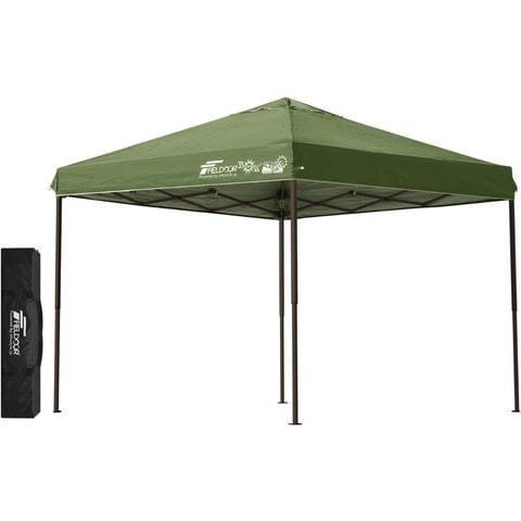 FIELDOOR ワンタッチタープテント 2.5m (標準:カーキ/スチール/4点脚ロック/タープ本体のみ) テント タープ ワンタッチ ワンタッチテント ワンタッチタープ UV加工 撥水 ベンチレーション 収納バッグ付 日よけ キャンプ バーベキュー 送料無料