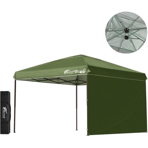 FIELDOOR ワンタッチタープテント 3m (標準:カーキ/スチール/強化版サイドフレーム/4点脚ロック/タープ本体のみ/サイドシート1枚付) テント タープ ワンタッチテント ワンタッチタープ UV加工 撥水 ベンチレーション 日よけ キャンプ 送料無料