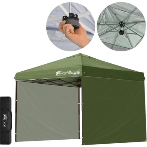 FIELDOOR ワンタッチタープテント 2.5m (標準:カーキ/スチール/強化版サイドフレーム/センターロック/タープ本体のみ/サイドシート2枚付) テント タープ ワンタッチテント ワンタッチタープ UV加工 撥水 ベンチレーション 日よけ キャンプ 送料無料