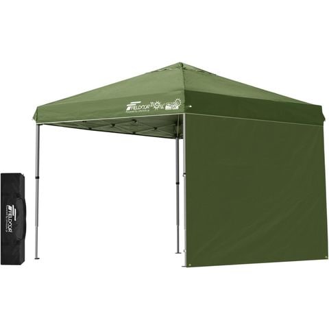 FIELDOOR ワンタッチタープテント 2.5m (標準:カーキ/アルミ/4点脚ロック/タープ本体のみ/サイドシート1枚付) 軽量 テント タープ ワンタッチ ワンタッチテント ワンタッチタープ UV加工 撥水 ベンチレーション 収納バッグ付 日よけ キャンプ 送料無料