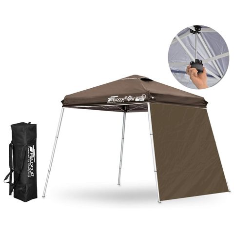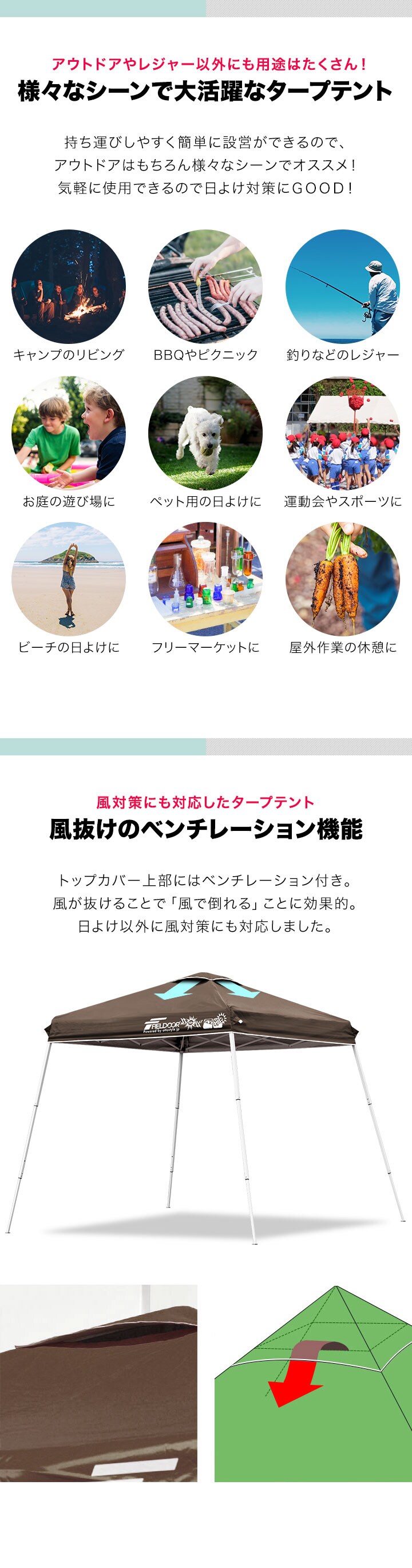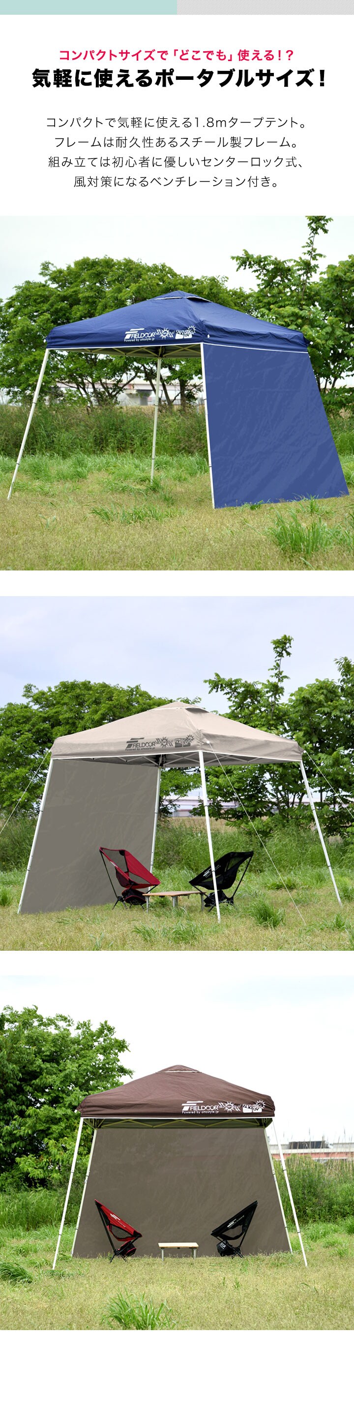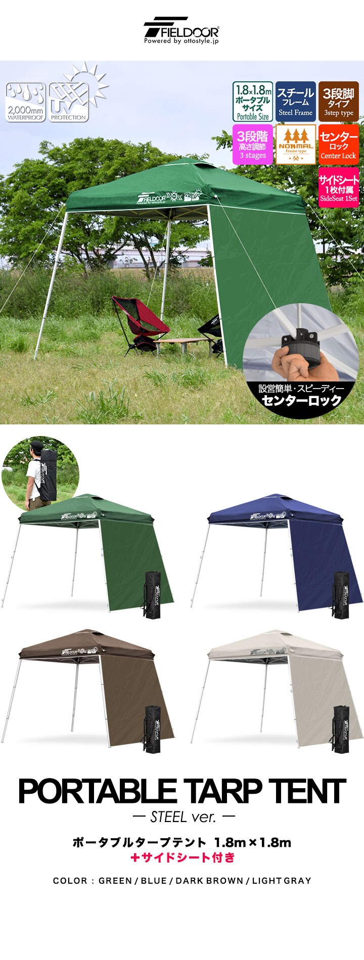 FIELDOOR ポータブルタープ 1.8m×1.8m (標準:ダークブラウン/スチール/センターロック/サイドシート1枚付) タープ テント 頑丈 スチール 180cm コンパクト 収納 小型 持ち運び 簡単 設営 ワンタッチタープ ワンタッチテント UV加工 撥水 アウトドア キャンプ 送料無料