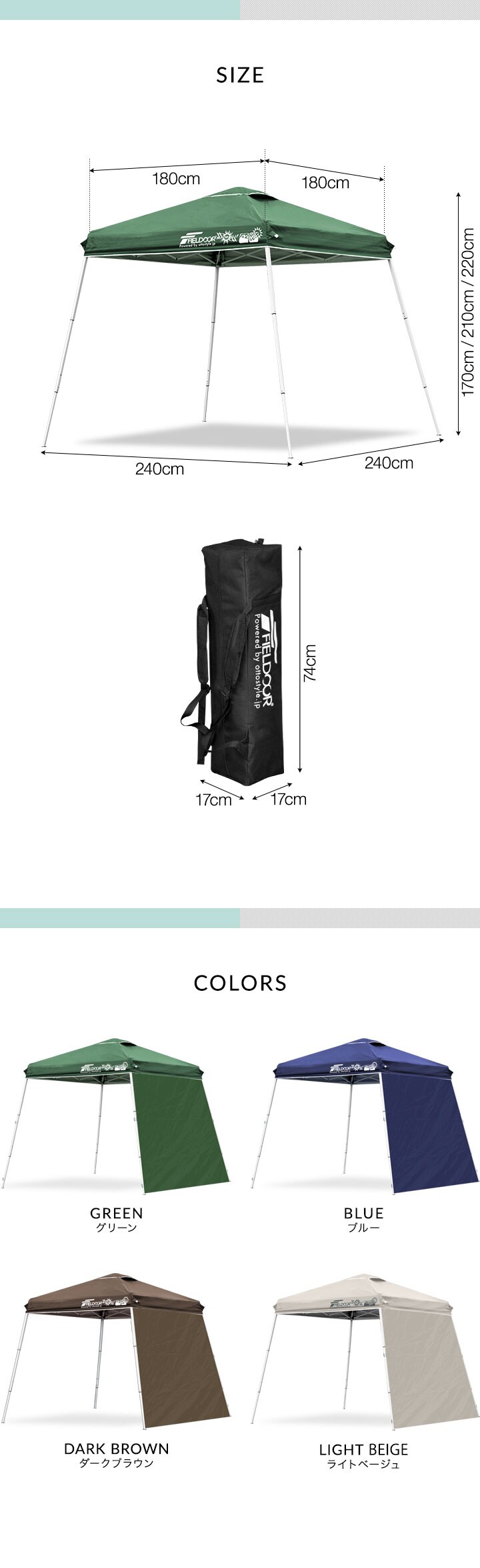 | 付属品: ・専用サイドシート(1枚) ・ロープ ・ペグ ・専用収納ケース ・取扱説明書(日本語) |