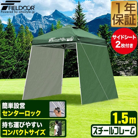 FIELDOOR ポータブルタープ 1.5m (標準:ダークブラウン/スチール/センターロック/サイドシート2枚付) タープ テント 頑丈 スチール 150cm コンパクト 収納 小型 持ち運び 簡単 設営 ワンタッチタープ ワンタッチテント UV加工 撥水 アウトドア キャンプ 送料無料