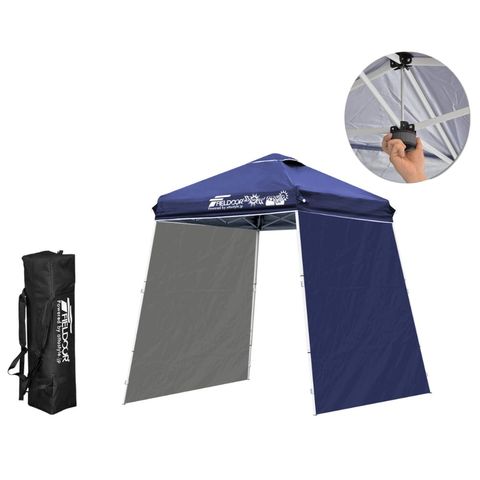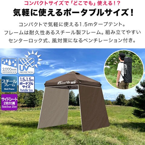 FIELDOOR ポータブルタープ 1.5m×1.5m (標準:ブルー/スチール/センターロック/サイドシート2枚付き) タープ テント 頑丈 スチール 150cm コンパクト 収納 小型 持ち運び 簡単 設営 ワンタッチタープ ワンタッチテント UV加工 撥水 アウトドア キャンプ 送料無料
