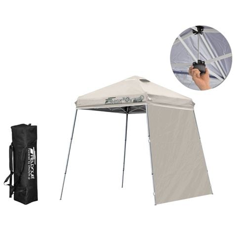 FIELDOOR ポータブルタープ 1.5m (標準:ライトベージュ/アルミ/センターロック/サイドシート1枚付き) タープ テント 頑丈 アルミ 150cm コンパクト 収納 小型 持ち運び 簡単 設営 ワンタッチタープ ワンタッチテント UV加工 撥水 アウトドア キャンプ 送料無料