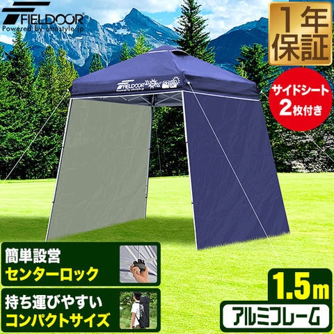 FIELDOOR ポータブルタープ 1.5m (標準:グリーン/アルミ/センターロック/サイドシート2枚付) タープ テント 頑丈 アルミ 150cm コンパクト 収納 小型 持ち運び 簡単 設営 ワンタッチタープ ワンタッチテント UV加工 撥水 アウトドア キャンプ 送料無料