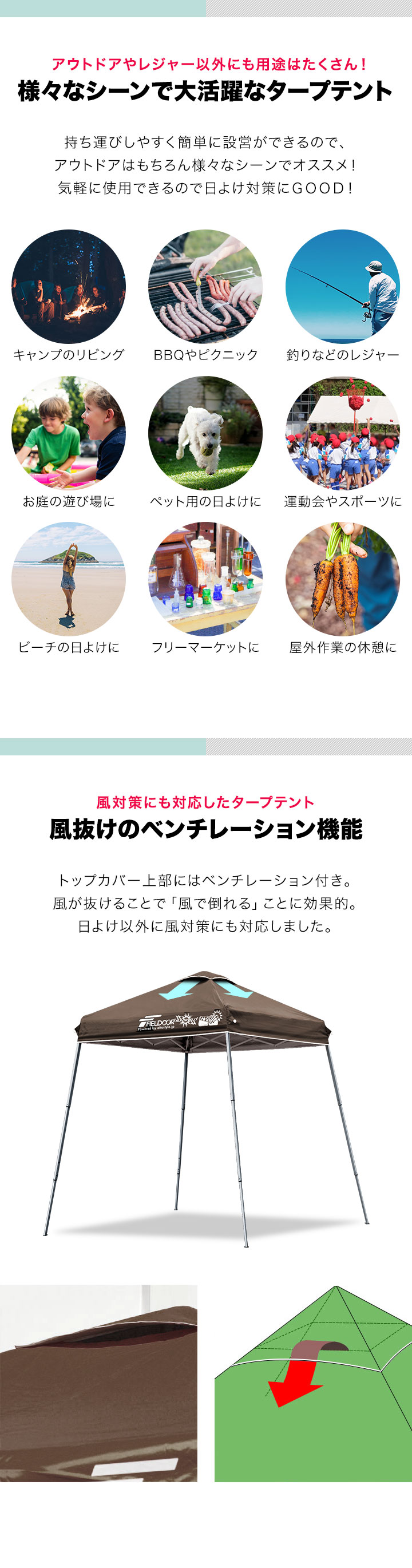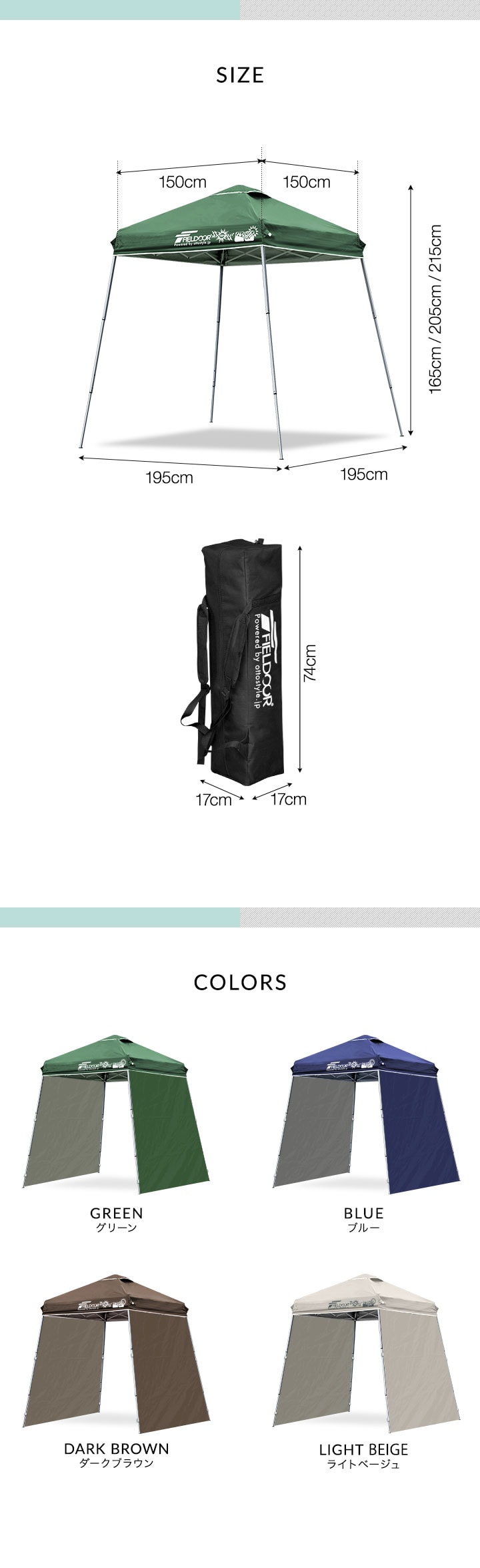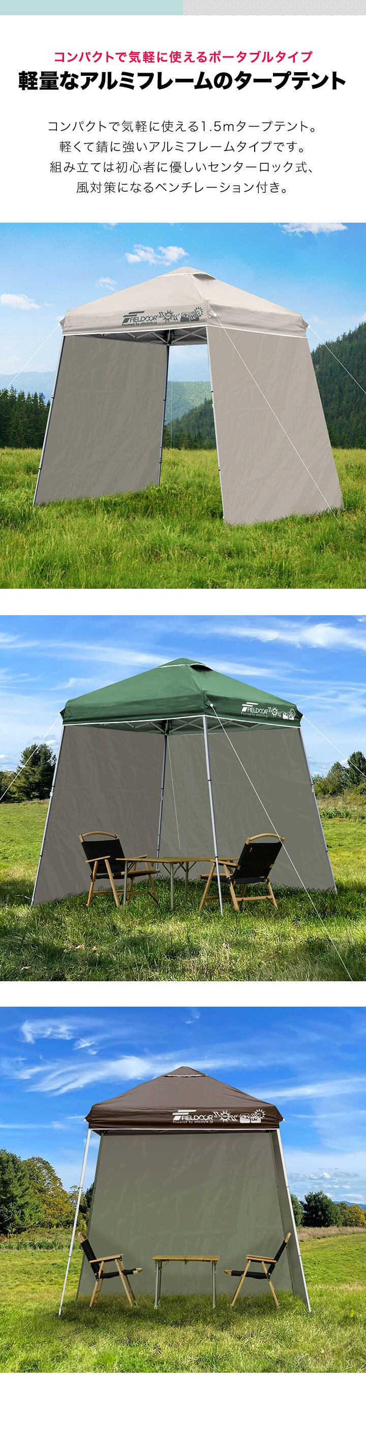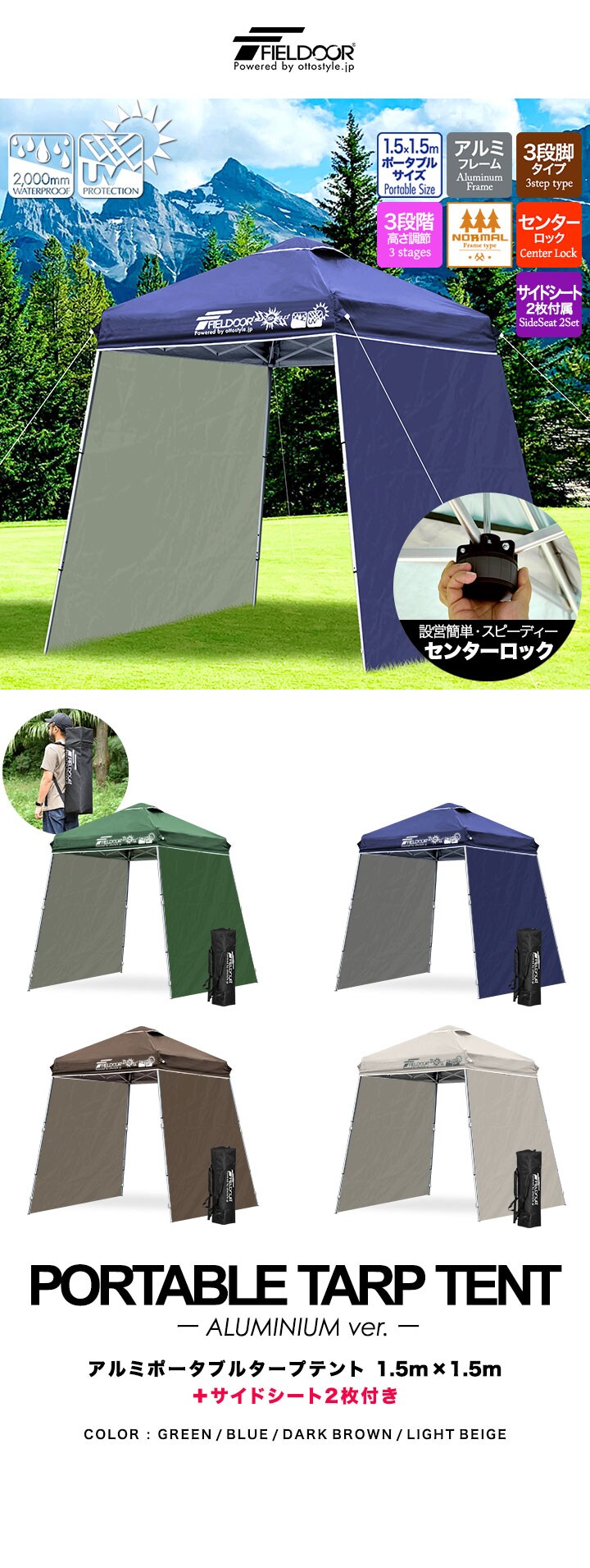 FIELDOOR ポータブルタープ 1.5m×1.5m (標準:ブルー/アルミ/センターロック/サイドシート2枚付き) タープ テント 頑丈 アルミ 150cm コンパクト 収納 小型 持ち運び 簡単 設営 ワンタッチタープ ワンタッチテント UV加工 撥水 アウトドア キャンプ 送料無料
