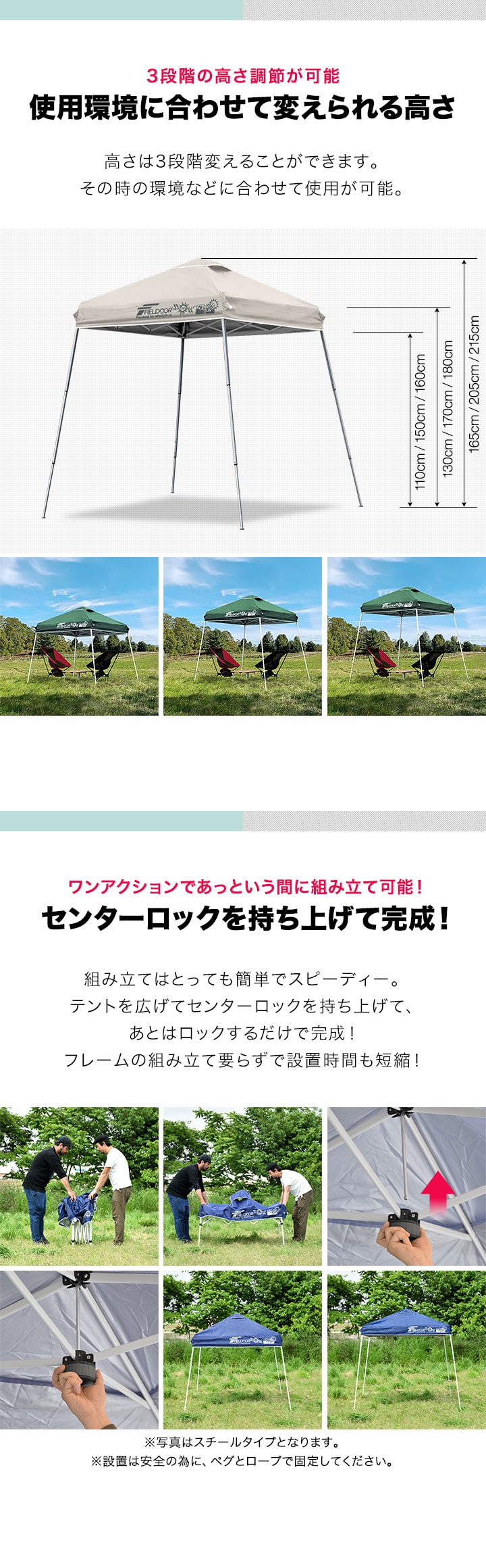| サイズ: 組立時 : (約)1.95m×1.95m×2.15m ※最大寸法 収納時 : (約)17cm×17cm×74cm |