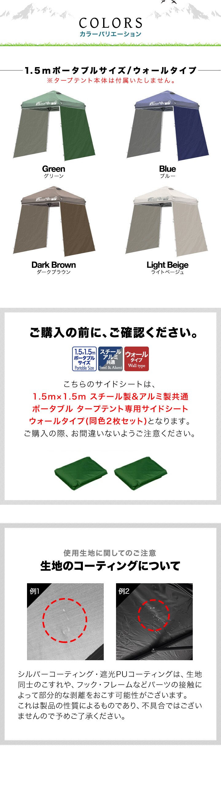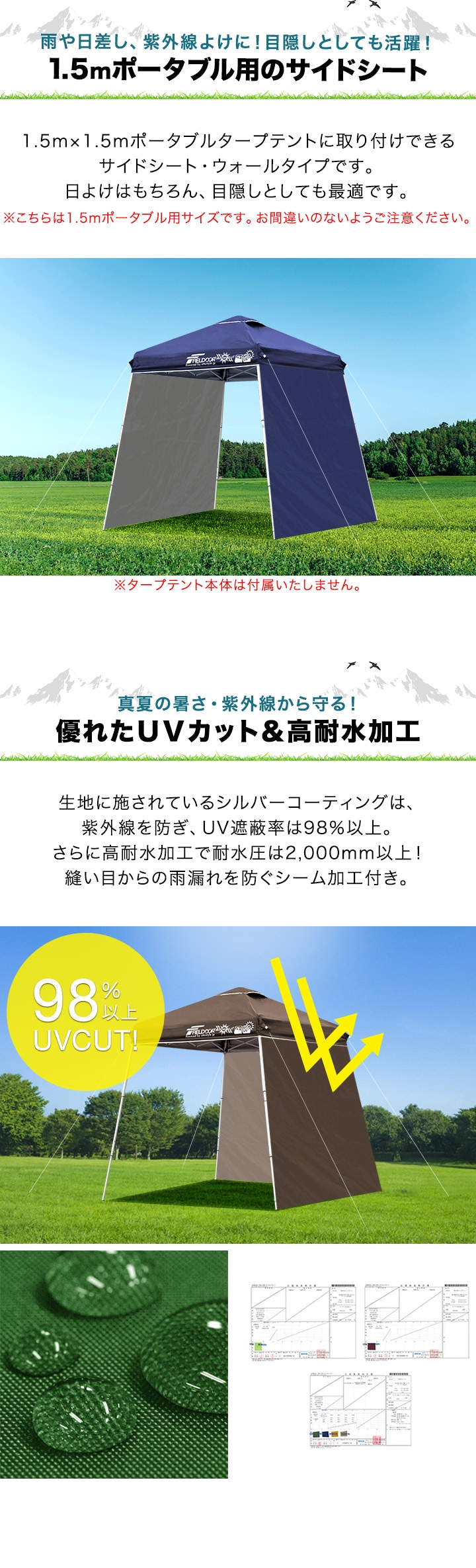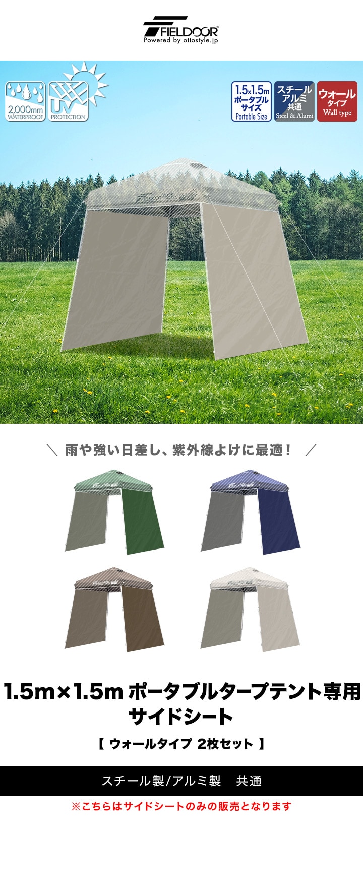 FIELDOOR ポータブルタープ 1.5m 専用 サイドシート 2枚セット (標準:ライトベージュ) 共通 スチール/アルミ ウォールスクリーン 横幕 ワンタッチタープ ポータブルタープテント 1.5m×1.5m用 オプション 交換用 ※シートのみ、タープ本体別売 送料無料